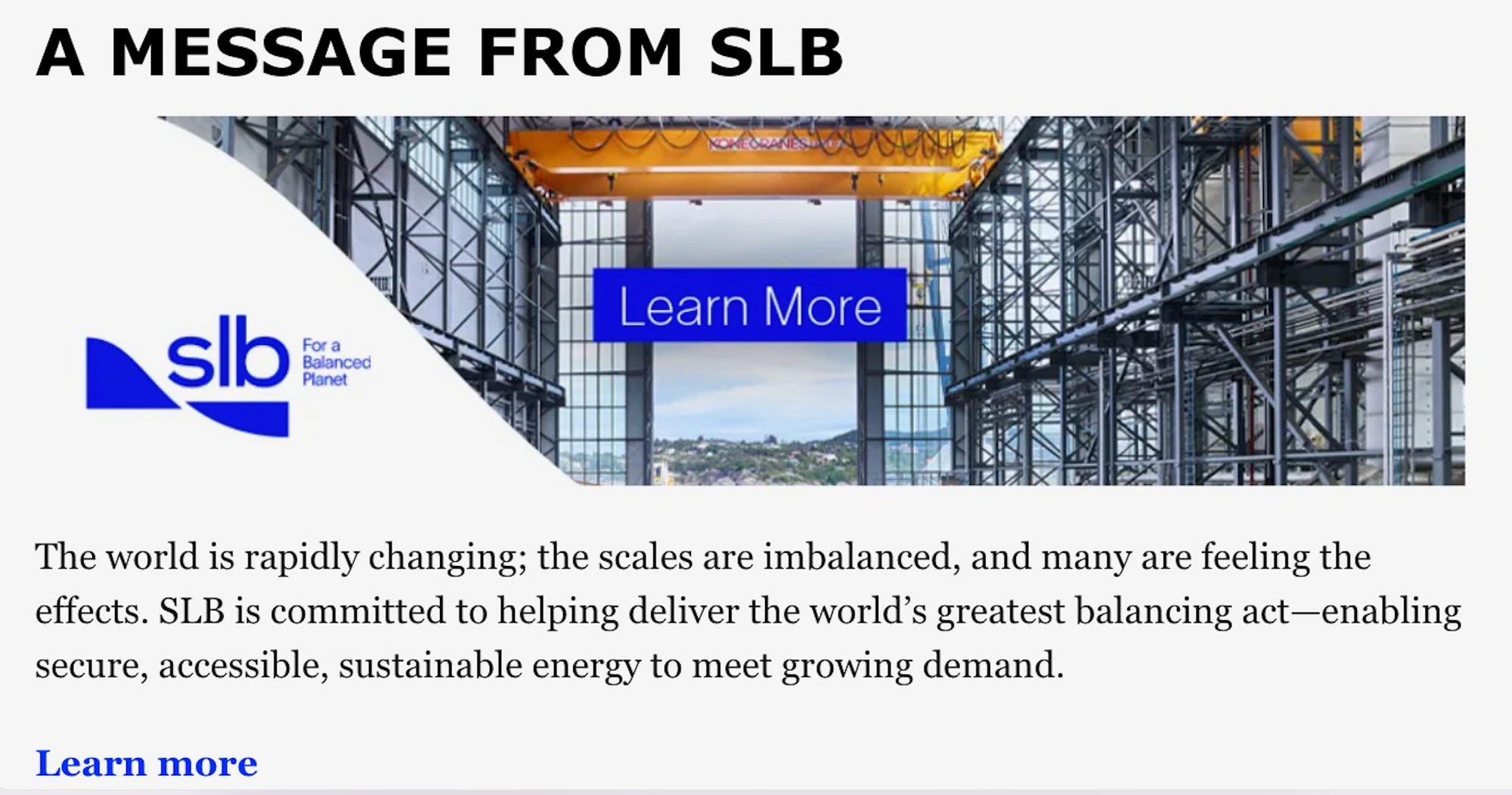 Good time to become SLB! The change happened yesterday—at the same time as the protest. Schlumberger even changed its name on LinkedIn, that's how you know it's serious! They are now a "global technology company, driving energy innovation for a balanced project." Wow, who are the ad whizzes who came up with that one? Well, we know actually, because LinkedIn. And also because the geniuses over at Clean Creatives will answer questions like "When did Schlumberger become SLB, and who did that brand work?" in a matter of minutes.